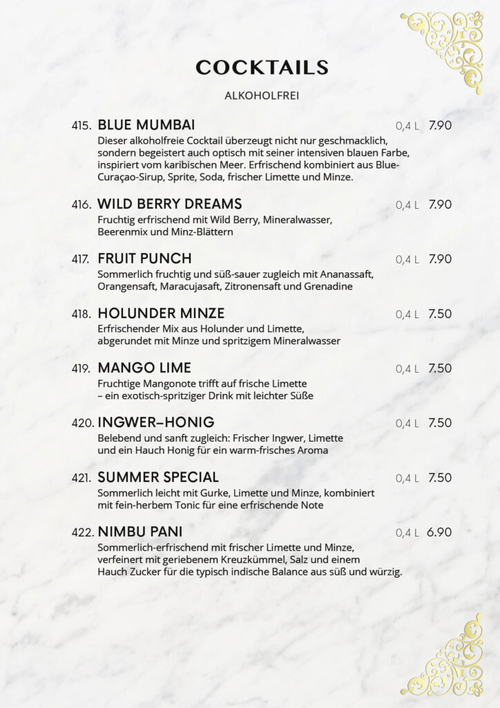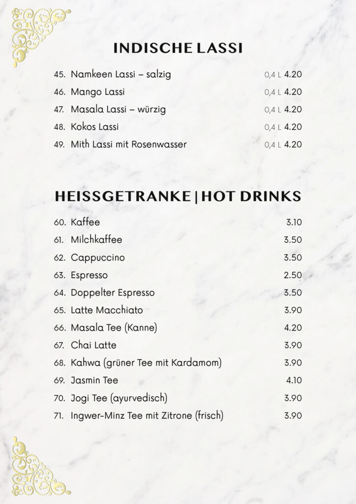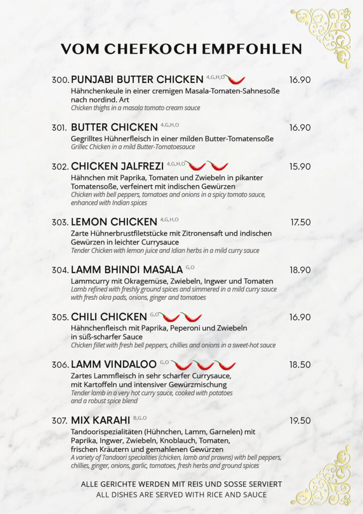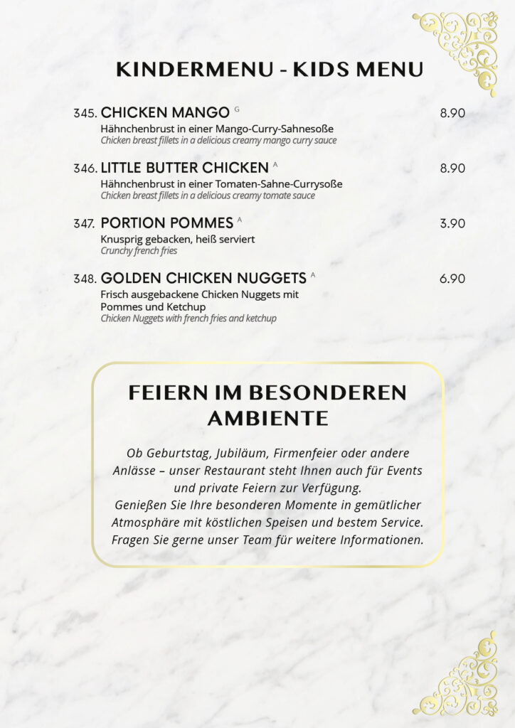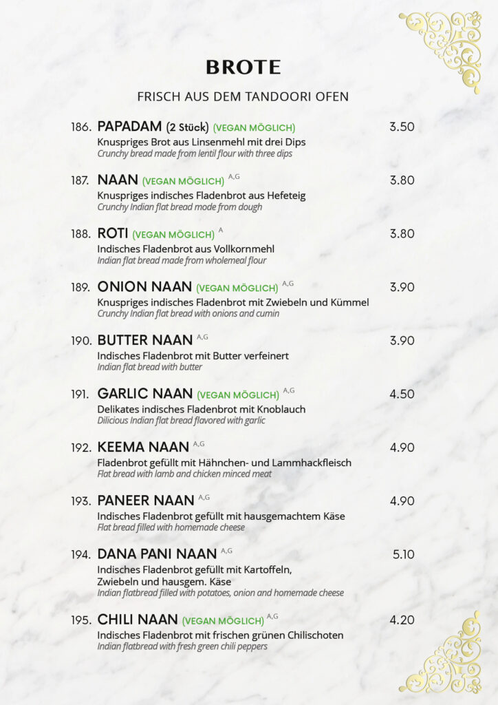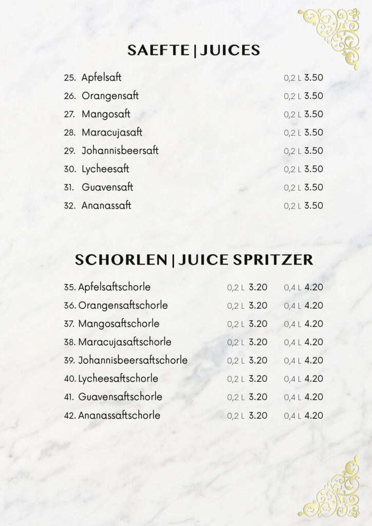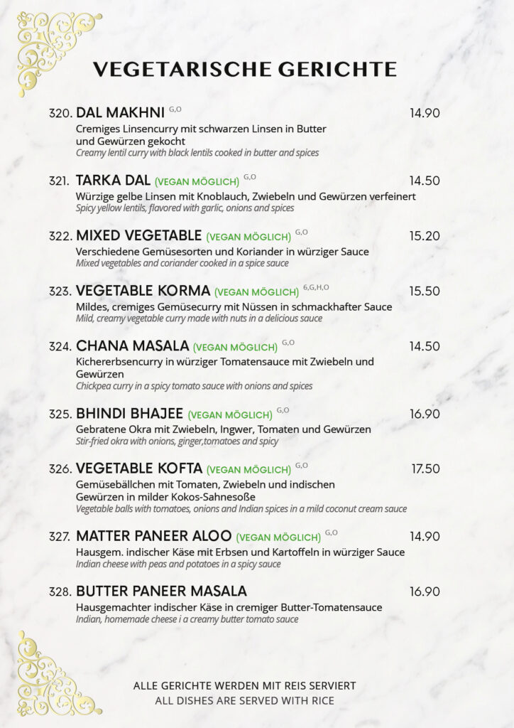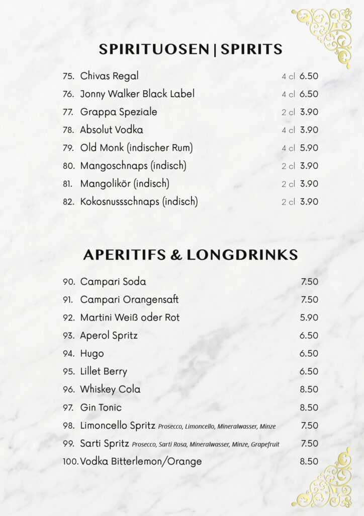 • Speisekarte